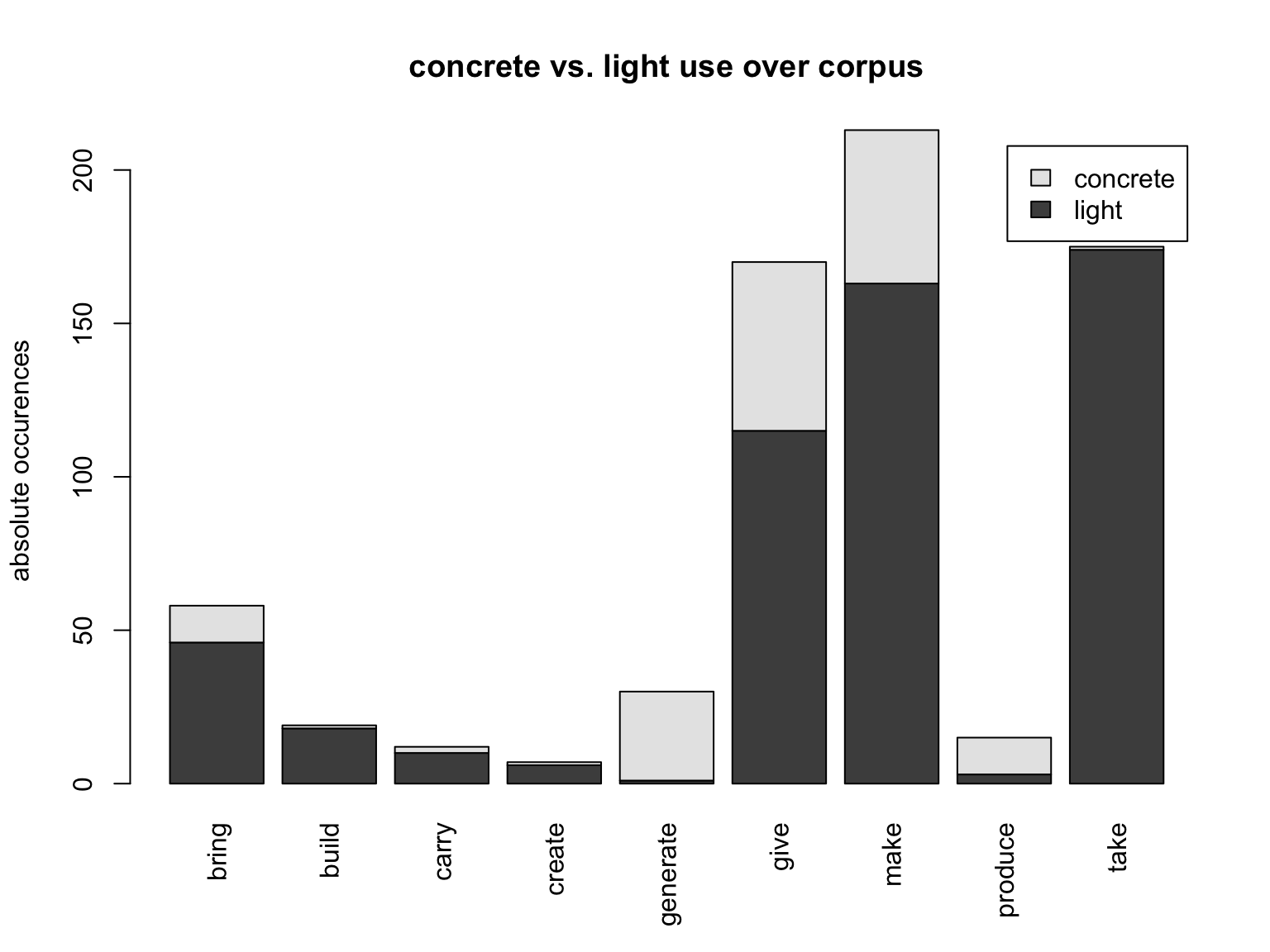 “are defined as those verbs that occur in the corpus with the same concrete direct objects as make, (take, and give) and with a roughly equivalent meaning.” (cf. Mehl (2021) p.13)